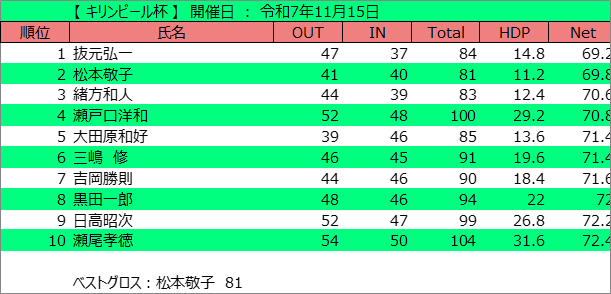 【 11月 2金杯 】 開催日 : 令和7年11月14日