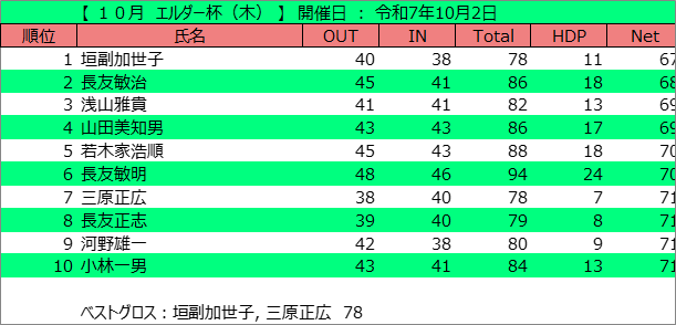 10月 エルダー杯(木) (令和7年10月2日)