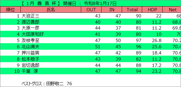 1月 レディースコンペ(令和8年1月14日)