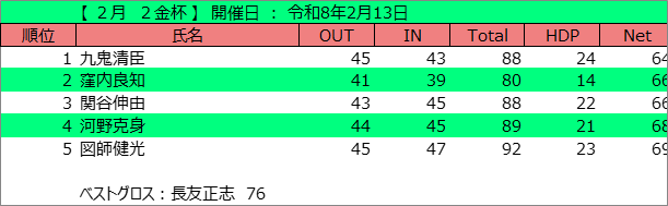 • 2月レディースコンペ(令和8年2月9日)