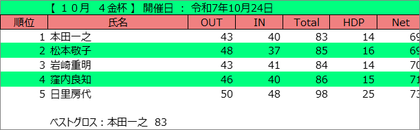 10月 月例杯 (令和7年10月20日)