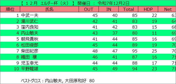 11月 シニア月例杯(火)(令和7年11月25日)
