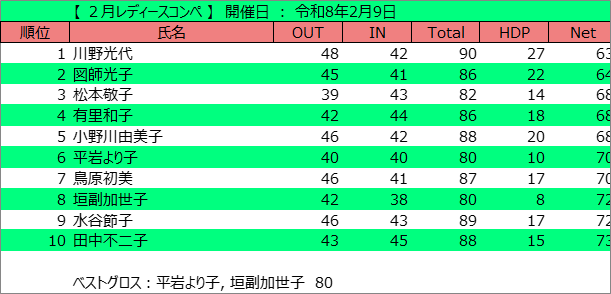 投稿日 : 2026年2月9日 最終更新日時 : 2026年2月10日 投稿者 : 一ツ瀬川 県民ゴルフ場 カテゴリー : レディース杯