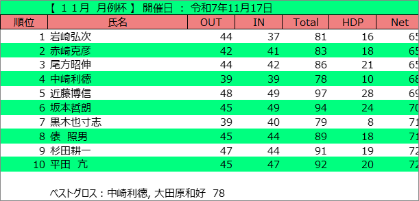 11月月例杯(令和7年11月17日)